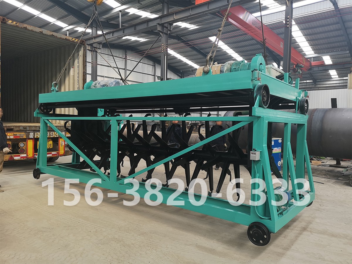 5.設備的電控系統(tǒng)先進可靠 ,操作方便,配置有遙控,自動、手動。主機開始運轉后,然后把旋轉按鈕轉向“自動”狀態(tài)打開行走按鈕,翻拋機開始工作。翻拋運行小車橫向翻拋到一側,碰住限位開關,翻拋運行小車停止行走,設備整機縱向行走3-5秒(約250-300毫米)后,翻拋運行小車開始橫向翻拋至另一側,這樣往返工作達到翻拋、充氧等效果。